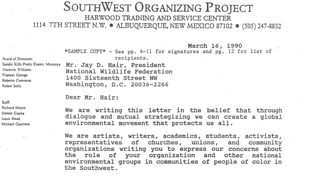 In 1990, a dedicated group of American environmental justice advocates sent a resounding message through what would be remembered as the SWOP letter to ten major environmental organizations. Their message was clear: the environmental sector of that era needed to expand their definition of the environment to include people and communities. The sector apparently overlooked the crucial integration of the social and economic dimensions in their approach to environmental work.